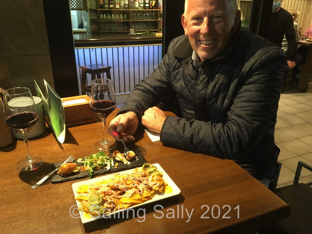 After a long day with at least 10 kilometers in our legs uphill and downhill, it should be nice to sit down at some cozy tapas bar. We do not have to go far from the hotel to find several places where we can try Spanish food and wine.