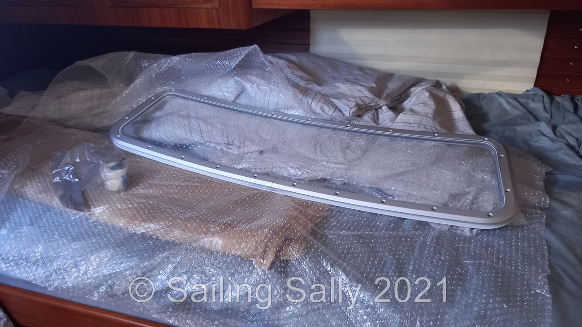 The large window in the aft cabin has started to leak a little in one corner and luckily we have new windows in the boat. Before the Atlantic crossing in 2019, we discovered that the frames began to corrode under the white color and blisters appeared in the color. We informed Hallberg-Rassy that arranged for Lewmar to send us new windows when we were in the Caribbean.