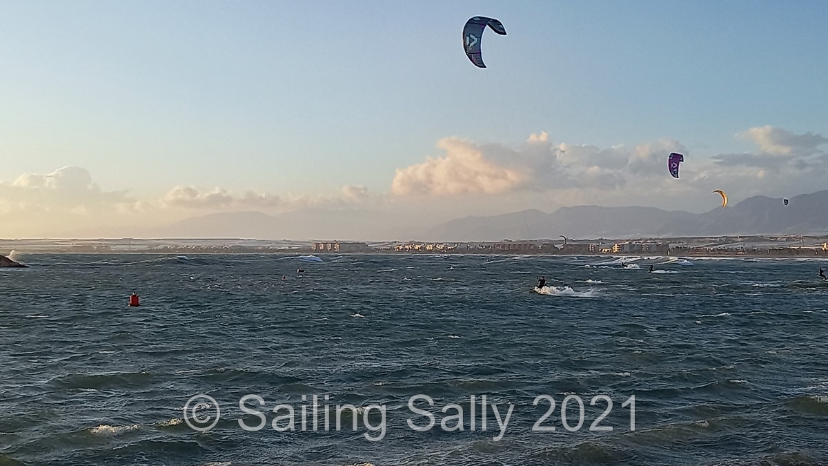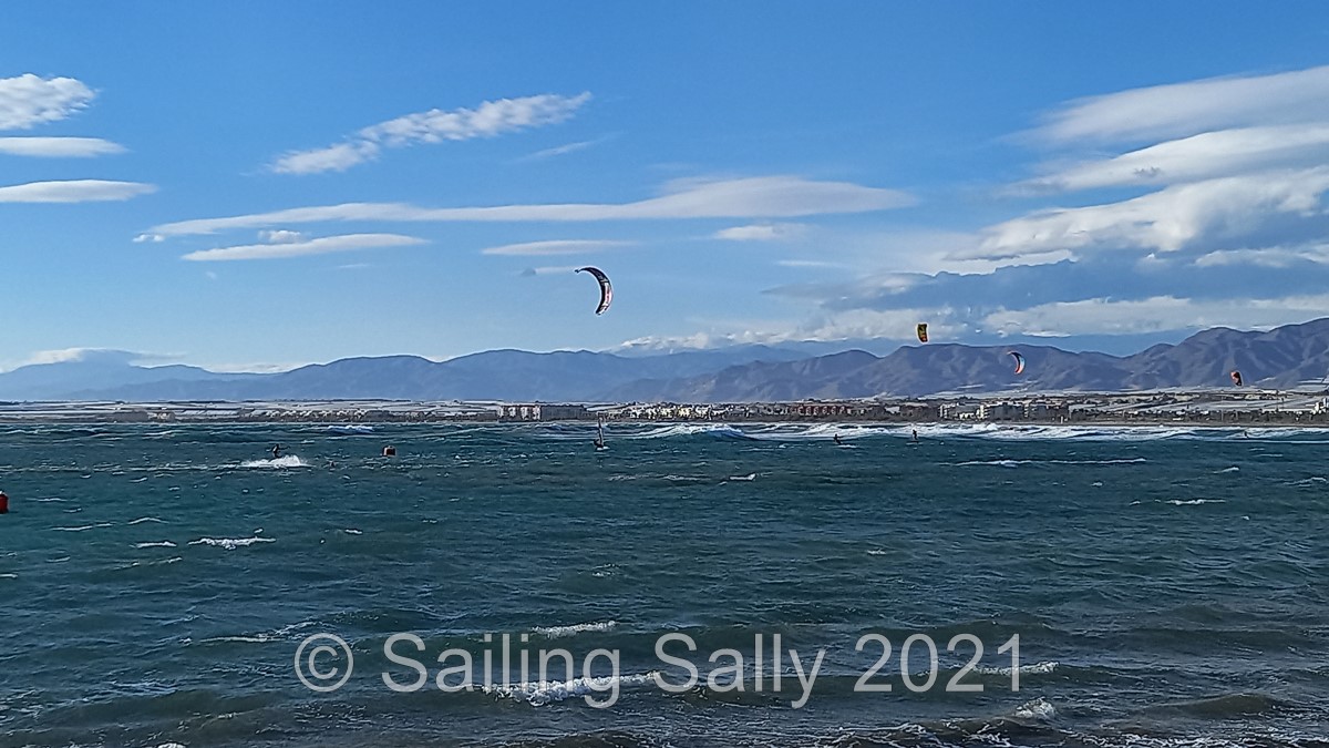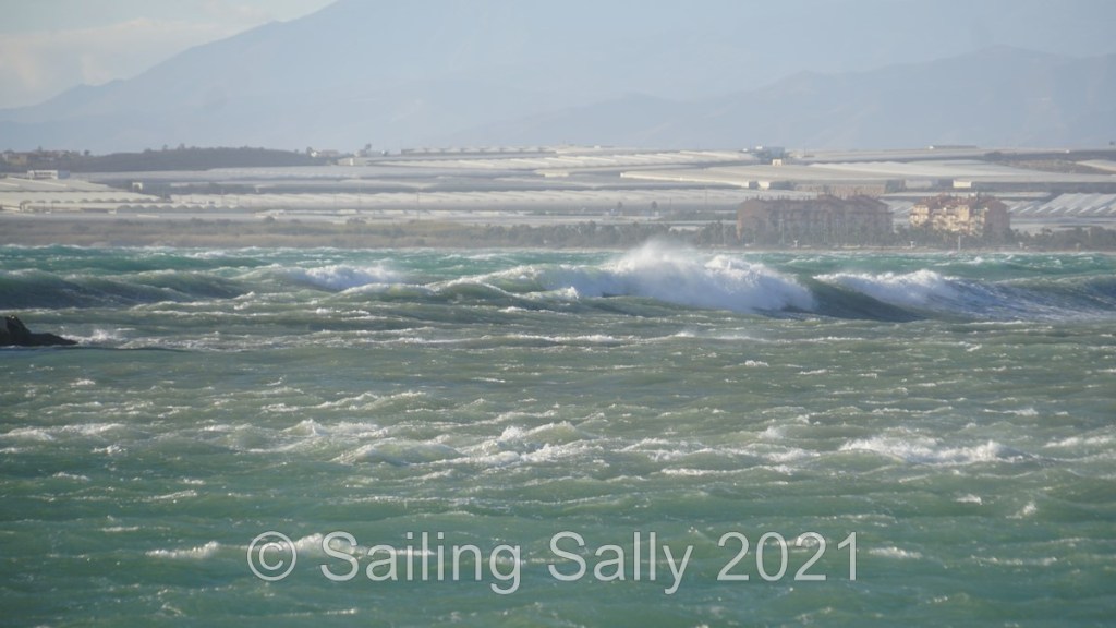At most, it blew almost 40 knots, ie almost storm. Then it whines in the masts here in Almerimar, and the sailboats heel in the gusts and pull hard on the mooring lines in the bow. There are some large sailboats on the pier where the harbor office is. Their rigs sing at a lower frequency and are heard all over the harbor.