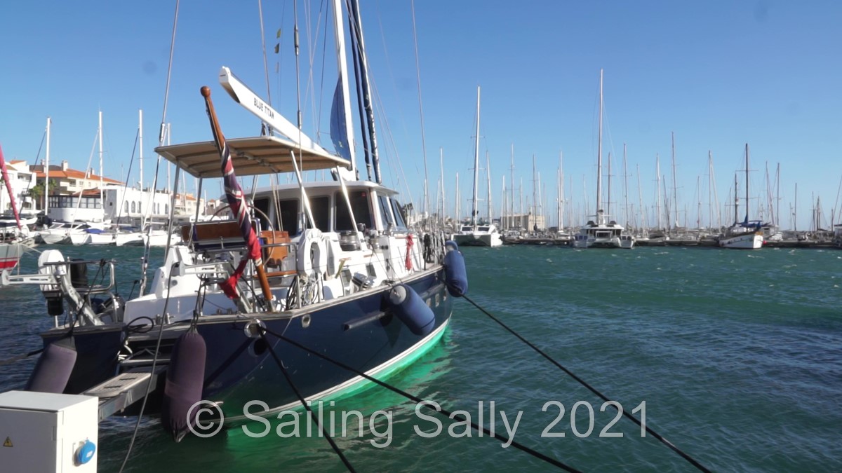 There are problems with the bow thruster since Estepona and now I have measured the current and voltage when it runs. It seems that the bow thruster batteries lose capacity after just a few seconds, the voltage drops from over 13 V to 8 V and the current drops from over 350 A initially to 250 A and even less. You can also hear how the bow thruster slows down. So it tends that the batteries have become bad, I do not know why. The charging is always connected. We will have to do without it until we are back in Lagos and have more time to solve the problem.