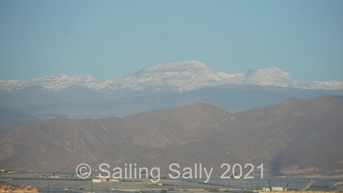 In connection with the strong winds, the snow falls up in the Sierra Nevada. In the morning the peaks are completely white. The first week it is like this, the snow always melts away during the day and when the sun goes down there is only a little snow left on the highest peaks. But for each day, more snow remains all day, so winter is well on its way here in southern Spain as well.