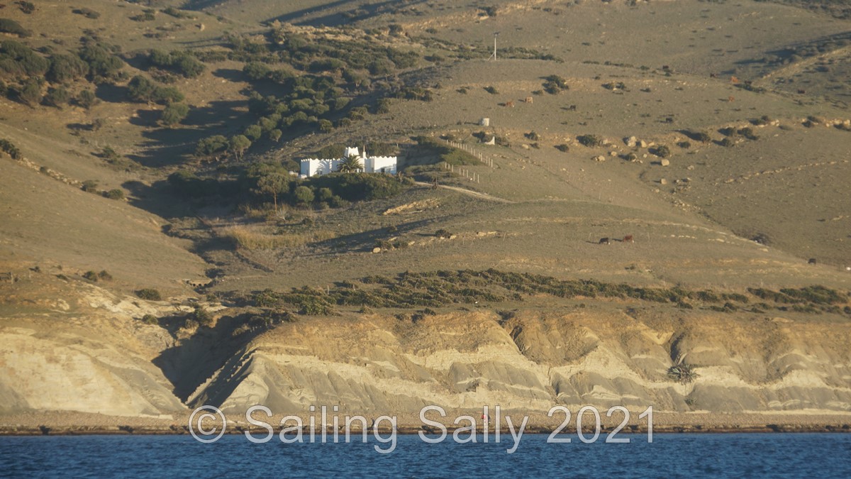A few hours out from Tarifa, the current turns and is with us a few hours when we sail towards Cadiz. We have nice sailing in an increasing breeze that slowly turns to the west. About an hour before we arrive at the entrance to Cadiz, the wind turns to the northwest. To make it to Cadiz before it gets dark, we use the engine to keep us on track.