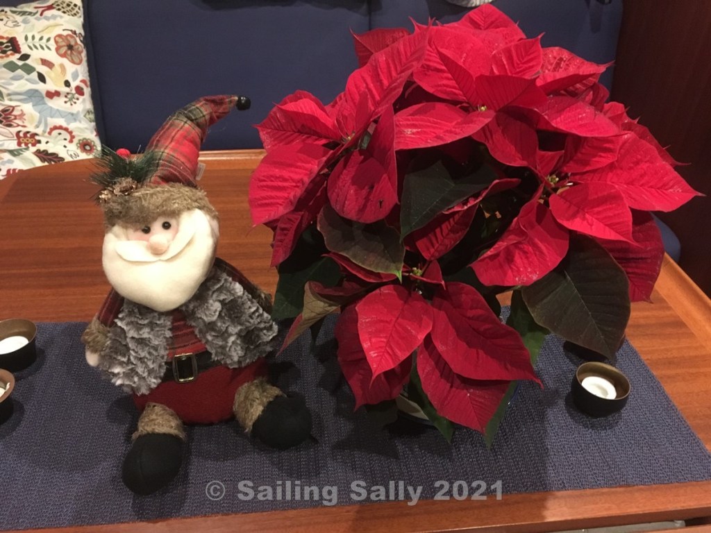 A little over a week after we got back from sailing in Spain, it’s time to celebrate Christmas Eve and the Christmas decorations are brought out on Sally.