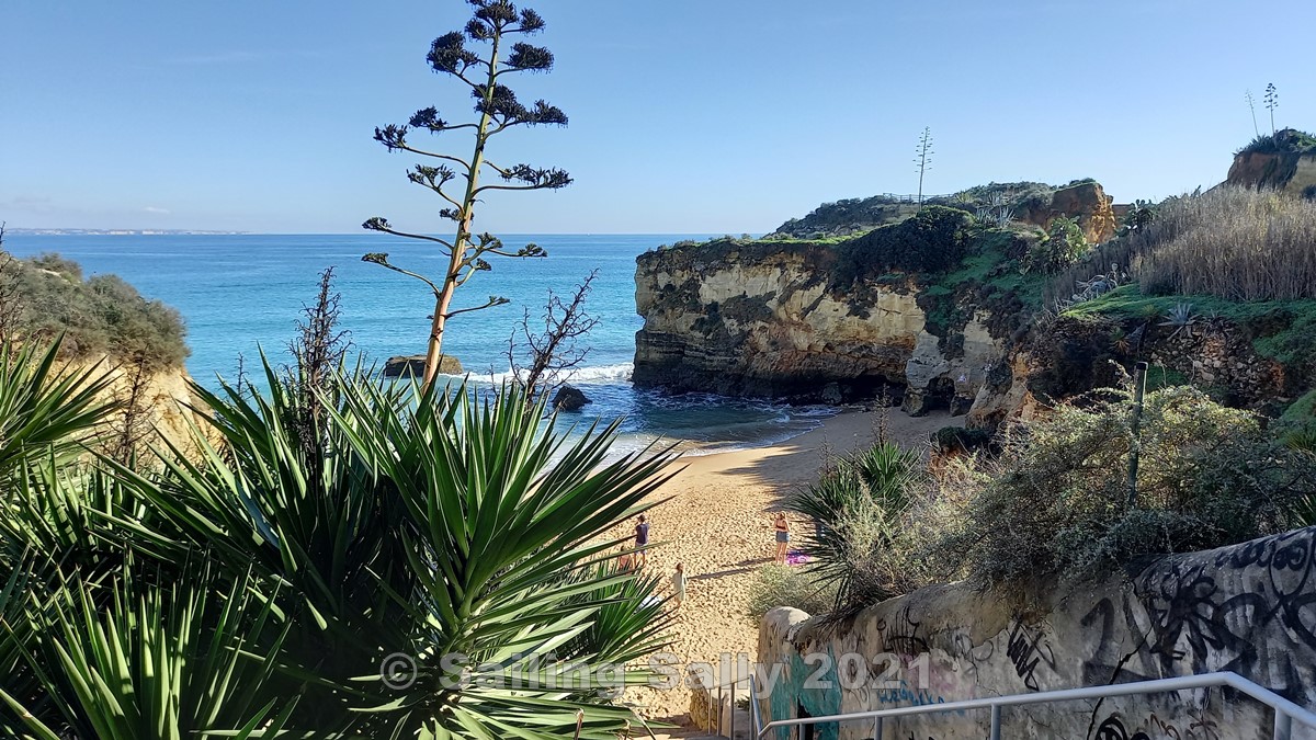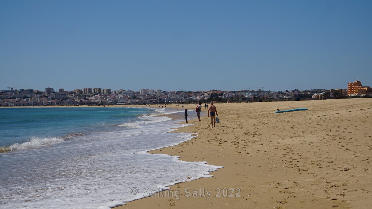 We walk a lot and here in Lagos there are long beaches that invite long walks. To the west of the inlet are several small sandy beaches surrounded by cliffs and caves that are so typical of the Algarve coast. To the east of the entrance to the marina is a long sandy beach, Meia Praia, which stretches several kilometers away to Alvor.