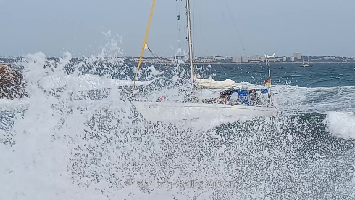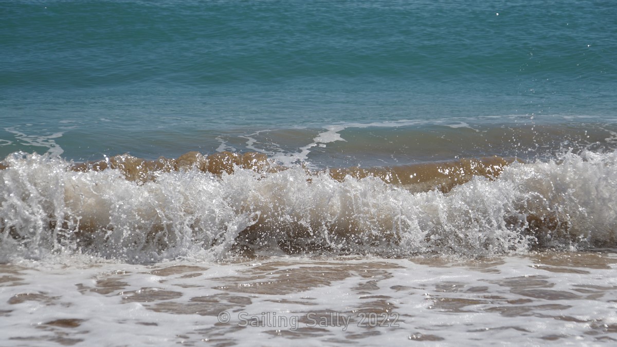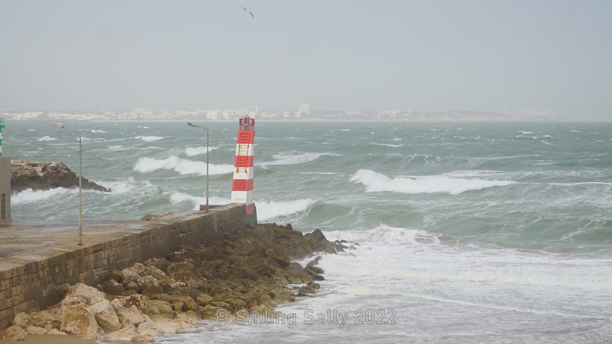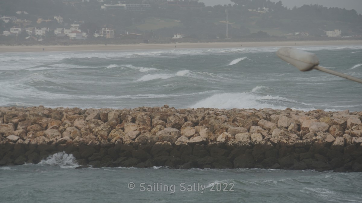 It’s not always sunny and windy, although it usually is. This winter Lagos was hit by two winter storms with strong winds from the south bringing rough seas towards the shores around Lagos. During these storms, the waves moved so much sand into the entrance of the marina that after the second storm it was no longer possible to enter with sailboats except at high tide. At low tide the bottom was visible almost all the way to the other side of the inlet. Several boats got stuck and did not get free until it was high tide.