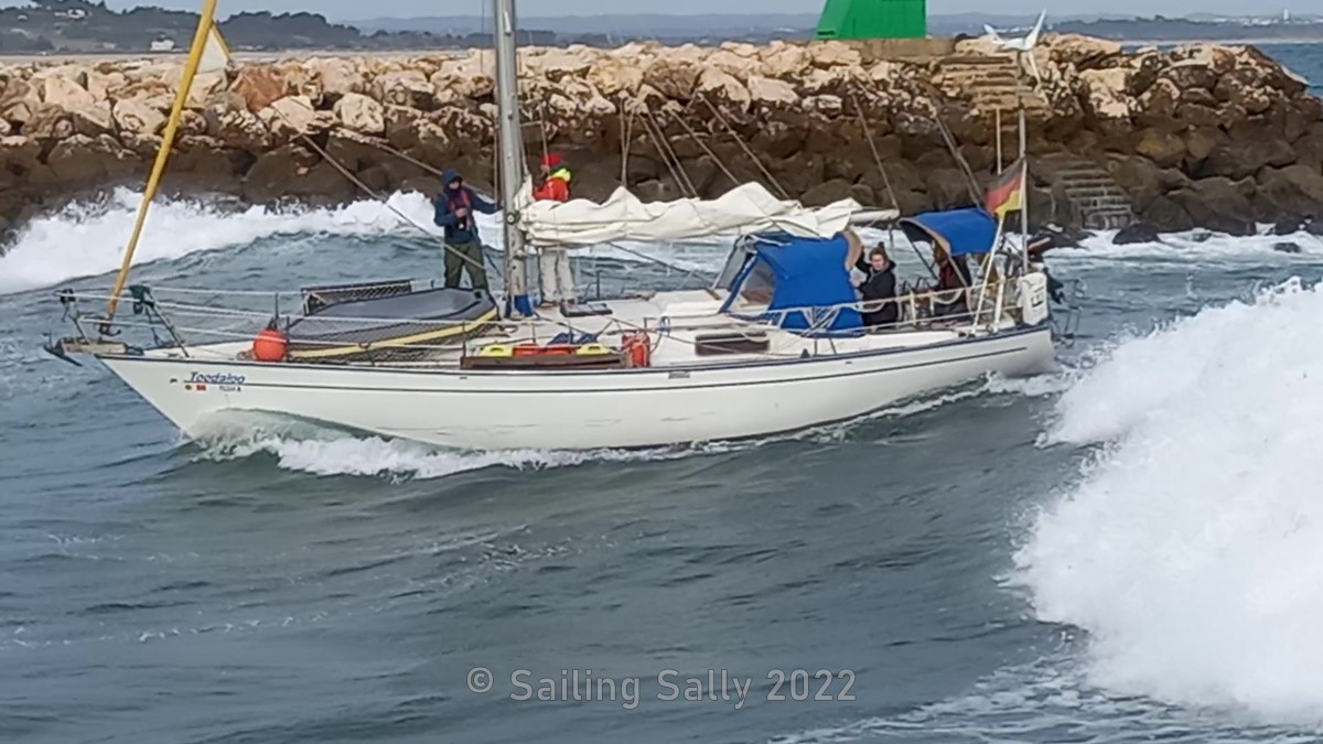 When the first storm had abated a little, the German boat Todeloo arrived and it was quite a dangerous entrance with large breaking waves before, after and at the sides of the boat. They were probably a little lucky that they didn’t get caught in a breaking wave. The inlet had begun to be more shallow and it was still possible to enter even though it was not high tide.