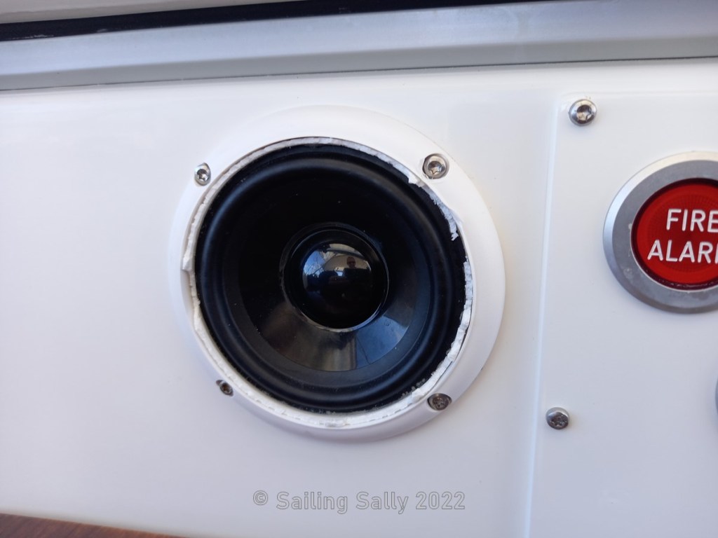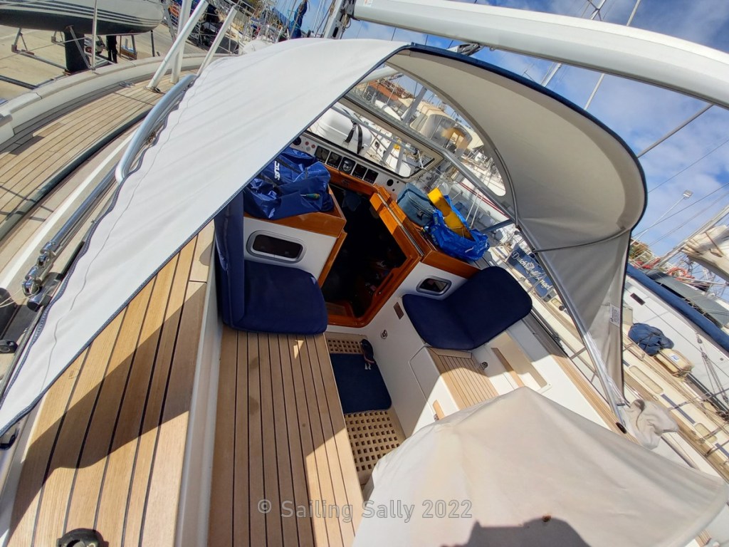We have bought a new spray hood (the canopy over the entrance), the old one is very worn and leaking water and Hallberg-Rassy has delivered a new one to us. It fits perfectly. The speakers in the cockpit have broken while we have been away from the boat and the shipyard is taking it upon themselves to replace them with new ones, which is appreciated by us 🙂