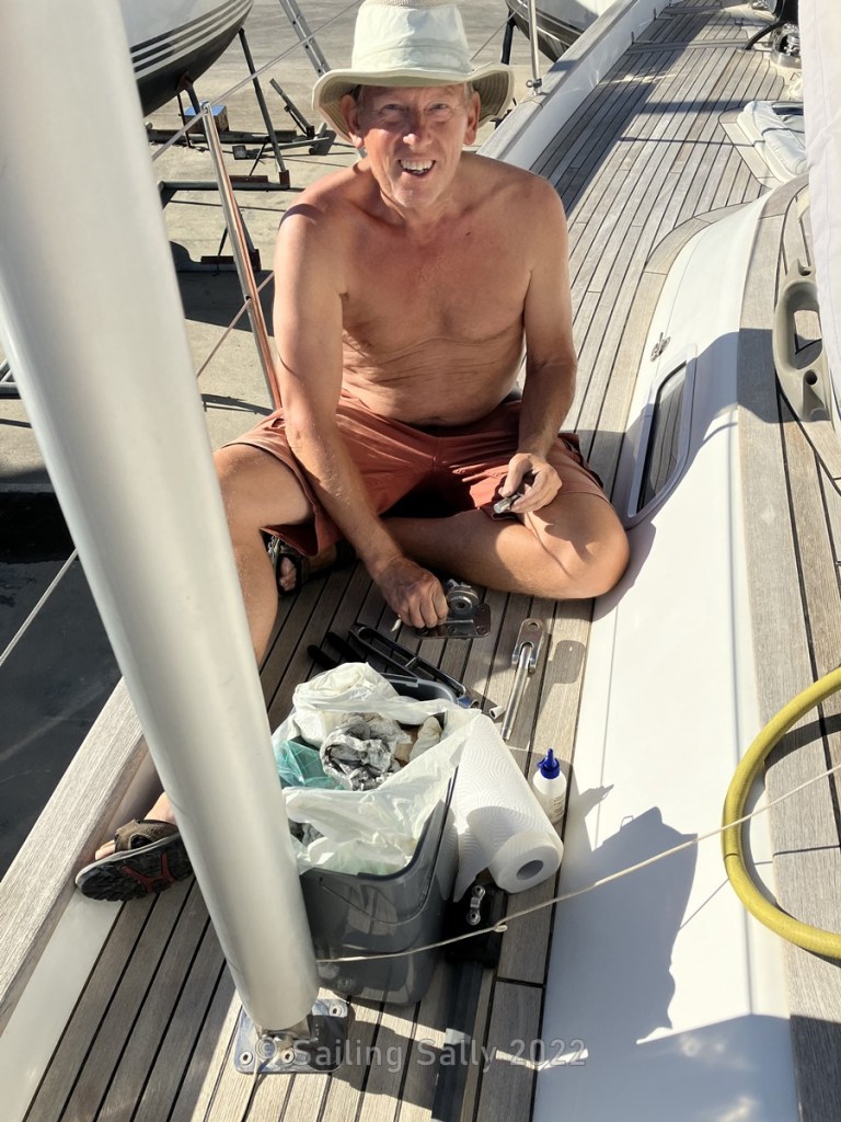 It is noticeable that the environment to the south with higher humidity and salty air, means that many things corrode much more than at home in Sweden. Now we take the opportunity to tidy up oxidized through hulls and check that the strainers in the water intake are OK. It turns out that the strainer for the water intake to the watermaker has started to rust. It will probably last a while, but it’s time to buy a new one (if possible).