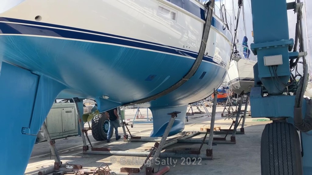 Then we need to paint a new bottom color and new antifouling on the bow thruster props, as well as polish and wax the hull sides. Then the seawater system in the engine and power plant must be drained of glycol. These are jobs that we let the yard do. They have good equipment to take care of glycol and supply engine with cooling water when running on land. It will probably be a bit more expensive than doing it ourselves, but we save a lot of time by not doing these steps ourselves.