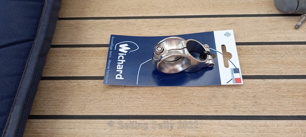 Almost all the rope guides for the preventer that sit on the guard rail has breaked and I have found another all metal model that seems much sturdier. Before we go out on a long sail again, I take the opportunity to replace the ones that are about to break. Should they break during sailing, it can be messy to repair. Things tend to break when the weather is bad, it’s dark and I’m off duty and probably sleeping.