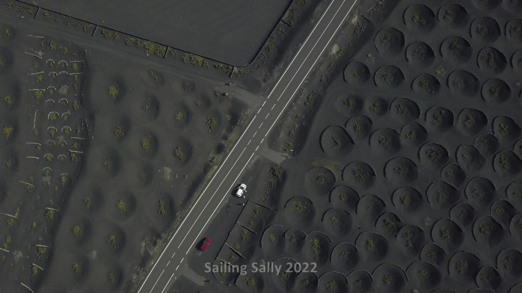 We set Google maps to guide us to the Mirador del Rio, the lookout point up on the strait towards La Graciosa. On the way there we drive through La Geria and Masdache which are the centers for the vineyards on the island.