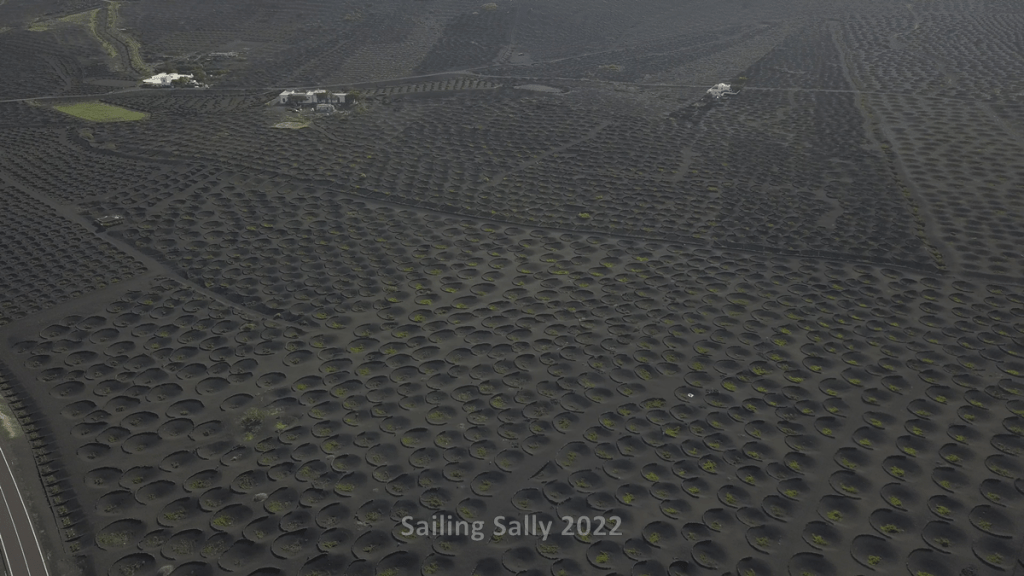 Pretty soon after we pass Femes the lava field begins and we start to see vineyards on the edge of the lava field at La Geria. There are some other areas with vineyards at Masdache and Tinajo. There are also some vineyards up at Ye in the northern part of the island. The whole of Lanzarote is its own DOP district in Spain.