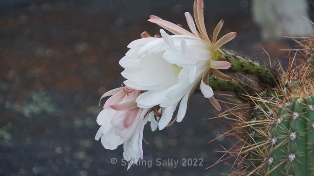 A little north of the island’s capital, Arrecife, is Costa Teguise. There are at least two sandy beaches here and thus the city is a tourist destination. We stop here to finally swim and hopefully find a restaurant where we can satisfy our hunger after the exhausting day’s program. For some reason we don’t have any pictures from the beach and the nice promenade. So you have to settle for a few pictures from the way down to the beach, there were many nice flowers to photograph here.