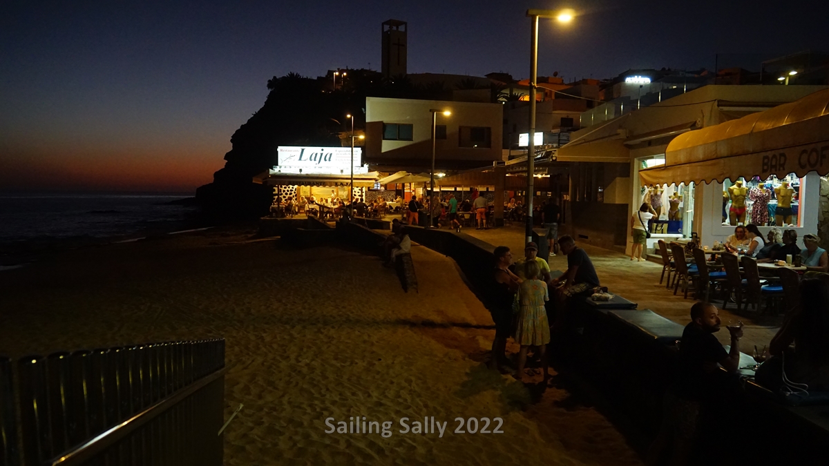 The port in Morro Jable has also been built since we were last here. It does not have room for so many visiting boats, and the two temporary pontoons that were in the outer harbor do not have contact with land. When we get to the port there is no free place for us and instead we anchor outside the village.