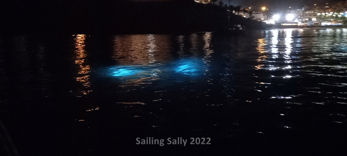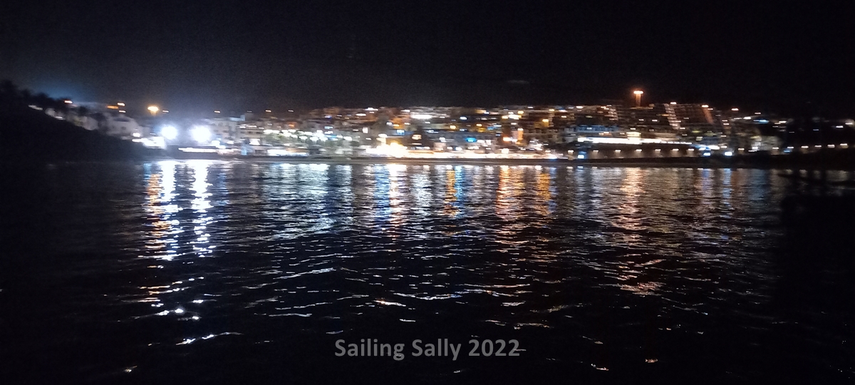 We have some nice calm evenings with just a little swell and almost no wind. It produces impressive reflections in the water from the lights on land. The evenings are warm so we sit out in the cockpit until late and enjoy ourselves before it’s time to crawl into cabin to sleep.