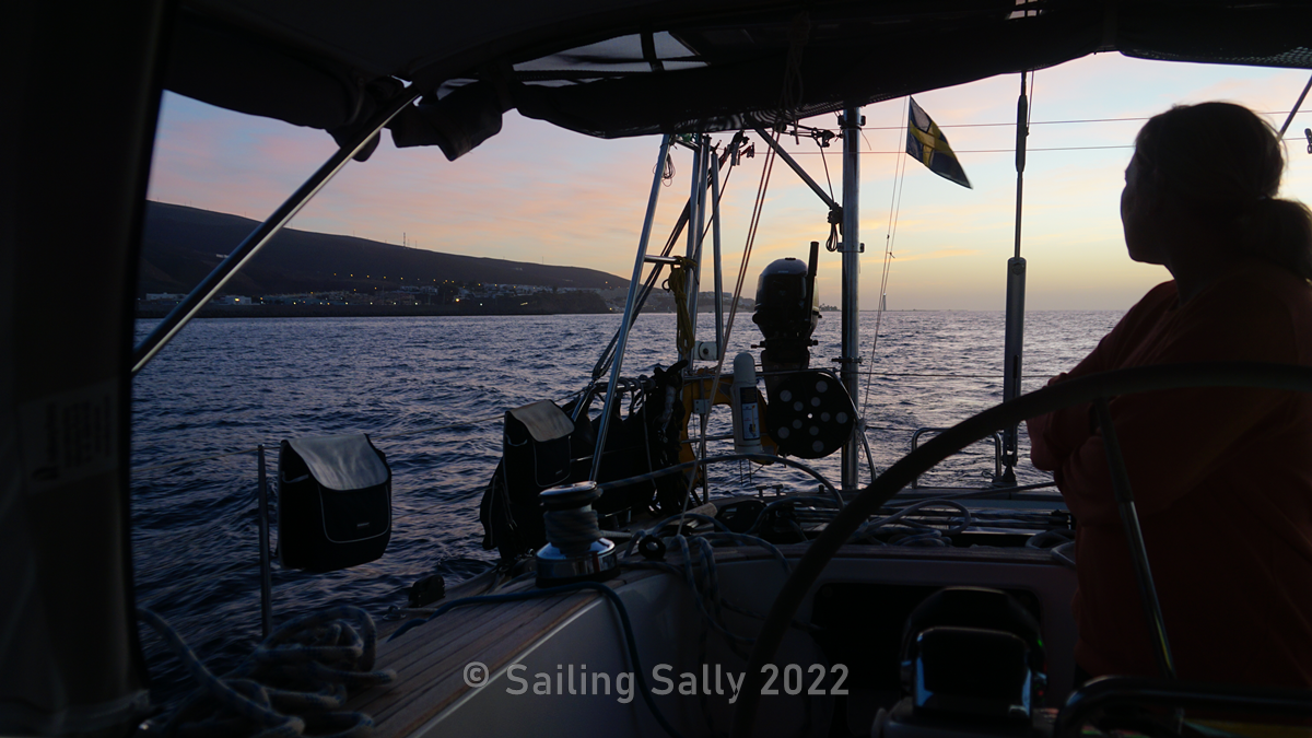 Från Morro Jable är det ungefär 60 distansminuter till Las Palmas på Gran Canaria. Det är en dagsetapp, ungefär 10 timmar med den vind som väderprognosen siar om. För att hinna fram innan det är mörkt, lämnar vi Morro Jable i gryningen.