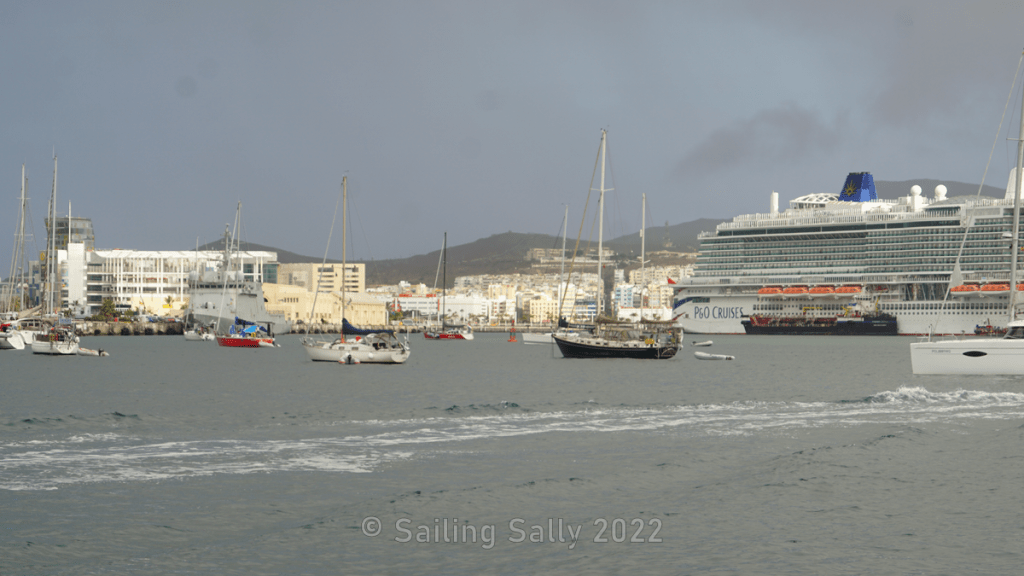 På eftermiddagen kommer vi fram till Las Palmas med sin typiska siluett som domineras av alla stora fartyg som är ankrade utanför och förtöjda i hamnen. De stora borrfartagen längs yttre hamnpiren är kvar sen vi var här förra gången (2019). Antagligen ligger de här och väntar på jobb eller så får de underhåll mellan uppdragen.