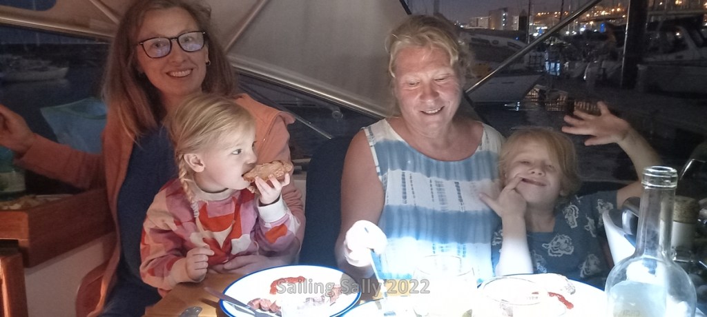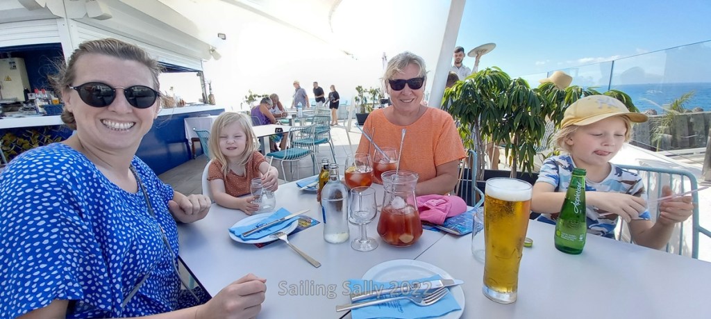 Now Sofia and the children have flown home to Sweden and we are back on board ourselves. Now we have plenty of room around the table in the cockpit and we take the opportunity to relax with a glass of cava while the sun goes down and we think back to the days with the grandchildren and Sofia.