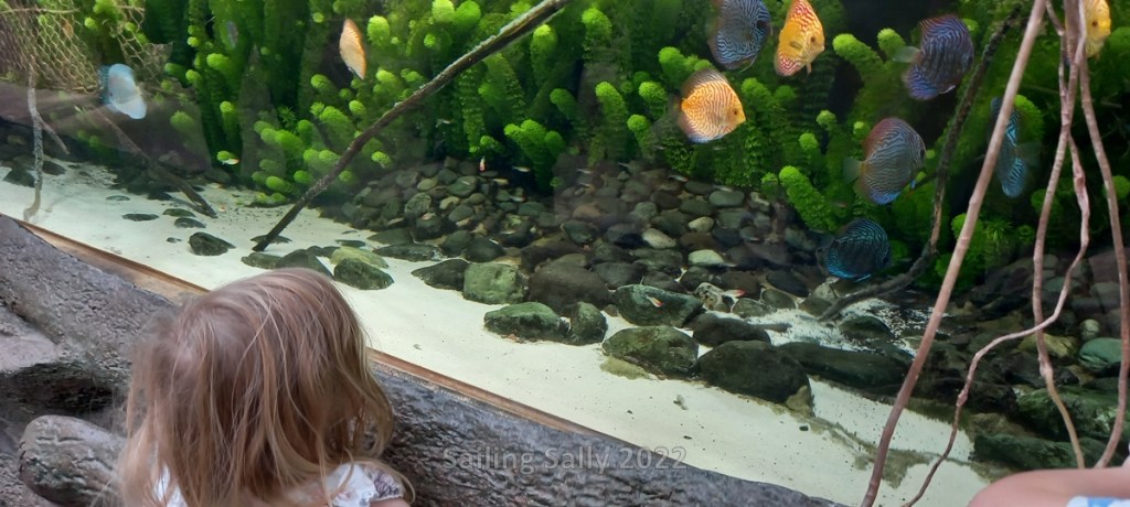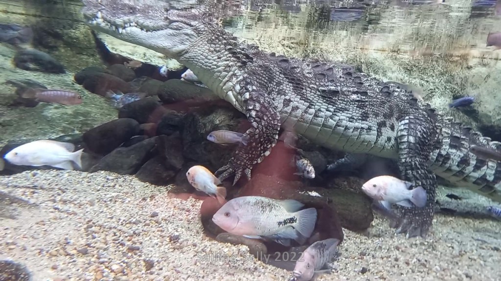 It is a large aquarium with a lot of different tropical fish and some crocodiles in a separate terrarium. I’ll let the pictures speak for themselves.