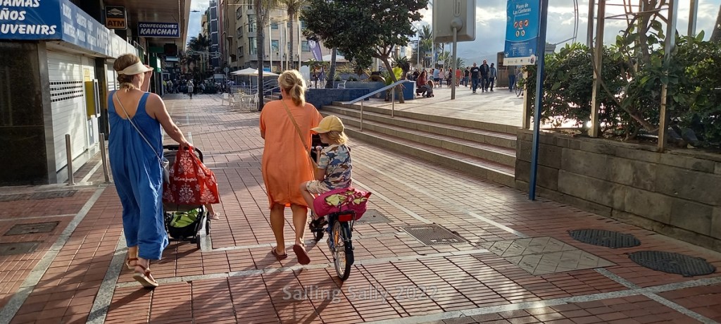 Our days together with grandchildren and Sofia begin with breakfast and morning coffee in the boat. Then we pack swimwear and go to Canteras if the weather is nice.