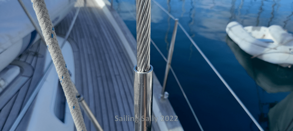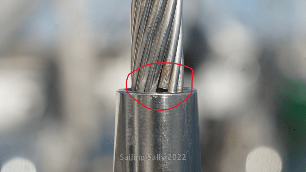 Seldén guarantees that the rig will last for 3 years or 20,000 nautical miles. Since our rig was over 3 years old but had only sailed 12,000 nautical miles, they agreed to send us new top shrouds (the lower part) if we pay shipping and customs fees.