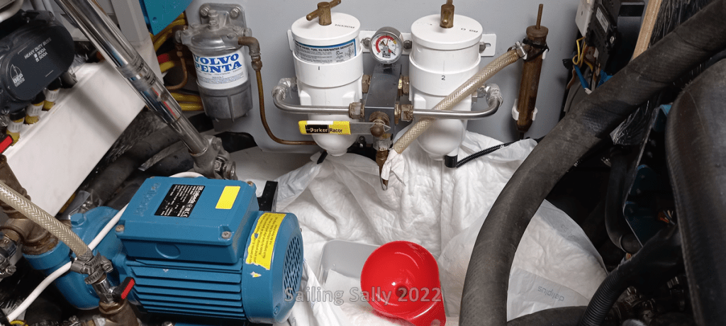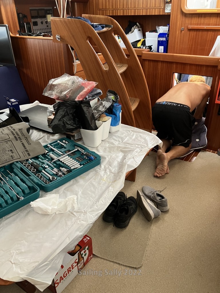 The time has come for a major engine service with the replacement of all filters, impellers, oil, drive belts for the generator and seawater pump. It is also time to change the coolant that has been in use since 2018. Fortunately, Volvo Penta has a well-stocked shop in the Las Palmas harbor where it is easy to get the filters and other things needed for the service. Then it’s just a matter of getting to work, it took us 2 days to do the service 🙂