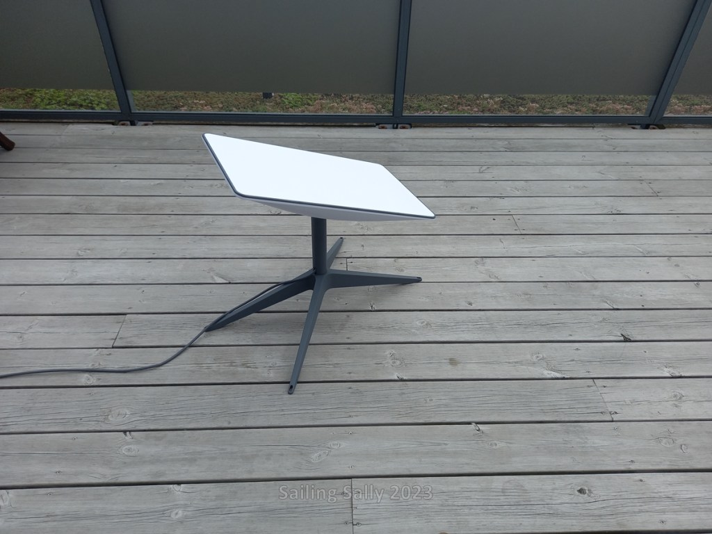 Nästa steg för oss är att installera antennen på båten och än så länge planerar jag att montera antennen på det rörliga stativet som sitter fast i antennen. Jag behåller routern, så när vi ska använda Starlink, får vi ha invertern igång. På sikt skulle jag vilja ersätta router och strömmatning till antennen så att den kan kopplas in på båtens elsystem för 24V DC. Det finns lite olika besked om hur den rörliga antennen fungerar på en ankrad eller gungande båt. Vi kommer att vänta med eventuell ombyggnad till fast montage av antennen tills vi själva har upplevt hur det fungerar.